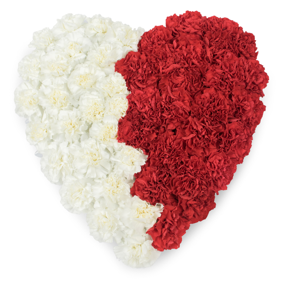 Express your emotions with our heartfelt combination of red and white carnations. This stunning bouquet is designed to deliver a powerful visual impact through its harmonious color palette and elegant design.